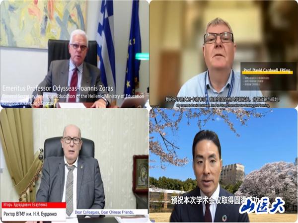会议还邀请了希腊教育、宗教事务和体育部高等教育秘书长奥迪塞斯·扬尼斯·左拉斯教授,俄罗斯沃罗涅日国立医科大学校长伊戈尔·叶塞乌林科院士,日本药科大学校长都筑稔教授和英国剑桥大学副校长大卫·卡德韦尔院士致欢迎辞。