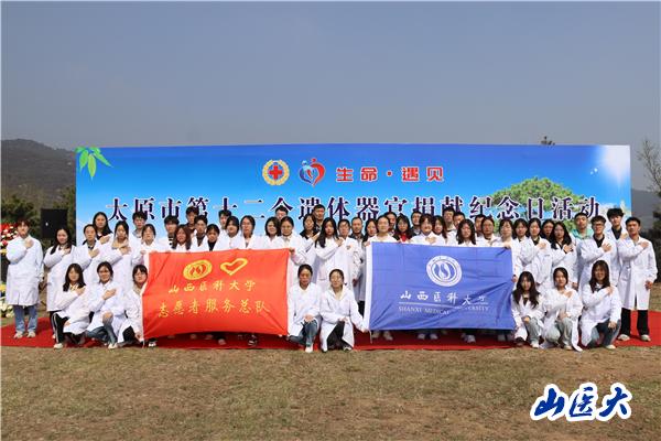 让生命在奉献中延续,让高尚在人世间永存。4月1日上午,由太原市红十字会、太原市民政局、山西晚报社共同主办的太原市第十二个遗体捐献纪念日活动在天龙山仙居园举行。校团委和基础医学院组织50余名师生代表参加了活动。