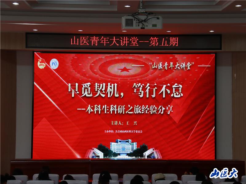 3月5日下午,由校团委主办的“山医青年大讲堂”第五期“早觅契机 笃行不怠——本科生科研之旅的经验分享”在“一站式”学生社区成功举办。本次讲座由我校口腔医学院副院长、第一批国家医学高层次人才优秀青年医师王兴教授主讲,校团委副书记吴晓兵主持,来自各院系的300余位青年学生现场聆听了讲座。