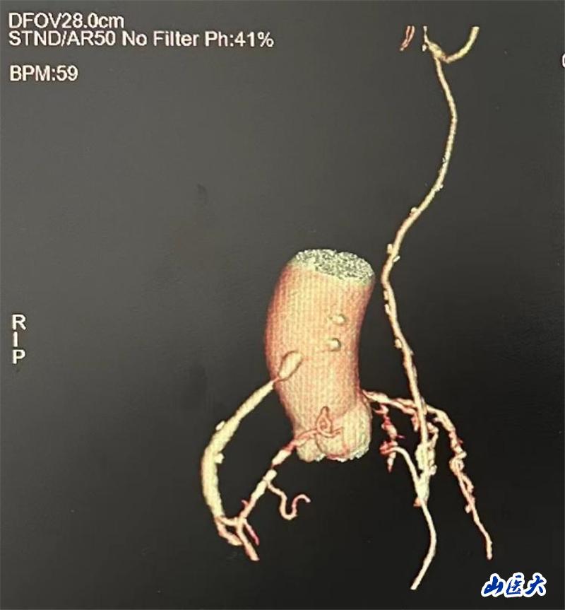 入院后,冠脉CT检查显示,患者的桥血管存在局部重度狭窄,且血清学指标提示合并有心功能不全,手术风险较大。杨滨团队对患者的病情进行了深入的研究,与家属进行了充分的沟通,进行了充分术前讨论和应急预案准备。